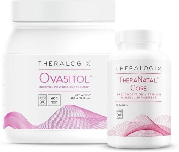 A comprehensive nutritional support solution designed for women preparing for pregnancy. This fertility-focused bundle combines Ovasitol, featuring a clinically studied 40:1 ratio of Myo-Inositol and D-Chiro Inositol, with TheraNatal Core, a premium prenatal supplement, to support reproductive health and overall wellness.